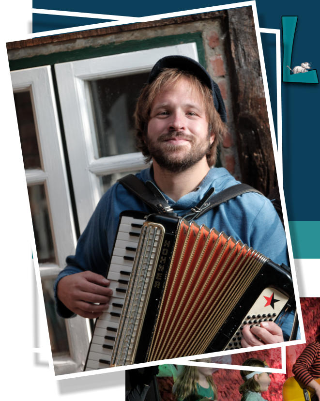 MeinWegzumKinderliedermacherbegann indenbeidengroßenselbstverwalteten KulturprojekteninNeumünster,demstatt-TheaterundderAktionJugendzentrum. Orte,andenenKinderundJugendliche kreativwerden,mitentscheidenundTeil großer Projekte sein dürfen.Imstatt-Theatersammelteichviele ErfahrungenmitdarstellendemSpielund Ensemblemusik.Heutebinichdortals MusikgruppenleiterundKomponistmeist neben der Bühne zu finden. Währendmeinesmusikwissenschaftlichen StudiumsentdeckteichdieStraßenmusik alsKleinkunstformfürmich.Mitder Gruppe„SchallundRauch“warichinner-